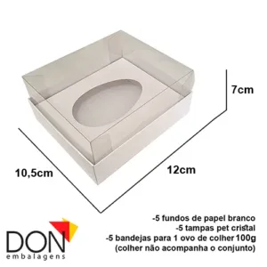 Caixa Ovo Colher Páscoa 100g Branco tampa transparente 5 unidades