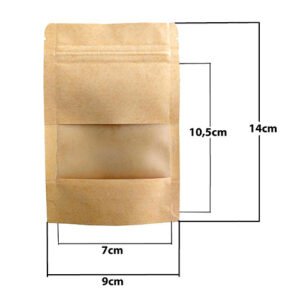Os sacos zip visor possuem formato stand up pouch, acabamento em kraft e uma janela visor em plástico transparente para que o produto embalado seja exposto sem perder nenhum detalhe.
