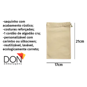 Saco Algodão Ecológico Bege 17×21 com 5 unidades