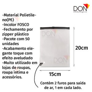 Tipo de fechamento: Sistema Ziper (Cor preta).