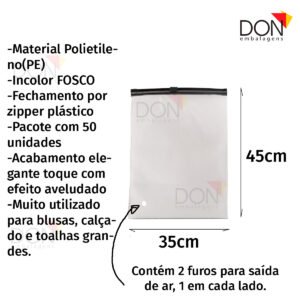 Tipo de fechamento: Sistema Ziper (Cor preta).