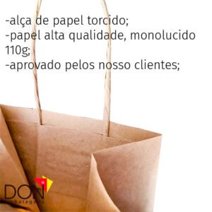 O papel kraft puro deixa a sacola mais firme, sem deixar o aspecto de papel reciclado e mole.